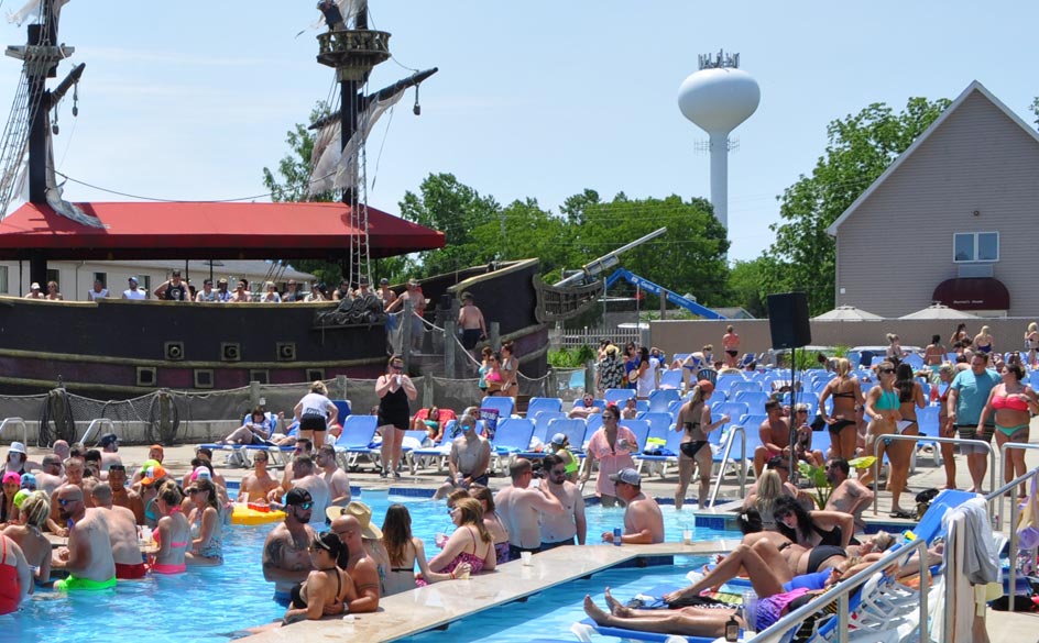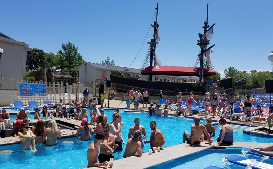 SPLASH! Is located in the heart of downtown Put-in-Bay, but you’ll swear you were somewhere in the Caribbean when you hear the live palm trees blowing in the wind and feel the warm sun tanning your body. With 97 bar seats in the water and over 200 chaise lounge chairs, you can soak up all the sunshine while being in the middle of the party. Enjoy daiquiris and other adult beverages in the pool, play under the waterfall and listen to great live entertainment every Friday and Saturday afternoon. With bands like Hubie Ashcraft, Aly’An, Chameleon, The Sellouts and many more, you’ll get to experience some of the best bands on Put-in-Bay. When the band is finished, the party doesn’t stop because one of our talented DJs from Level2 takes the stage to keep the crowd moving.